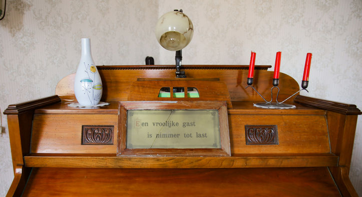 Zo'n keuken van circa 30 jaar oud is nu niet het mooiste om te fotograferen, ik zie ze liever wat ouder of wat nieuwer maar goed, dit tijdsbeeld moet ook vastgelegd worden. Wat ik dan weer wel leuk vond is bijvoorbeeld zo'n oude telefoon met draaischijf. Daar heb ik zelf vroeger ook uren met mijn vriendinnen mee zitten bellen.